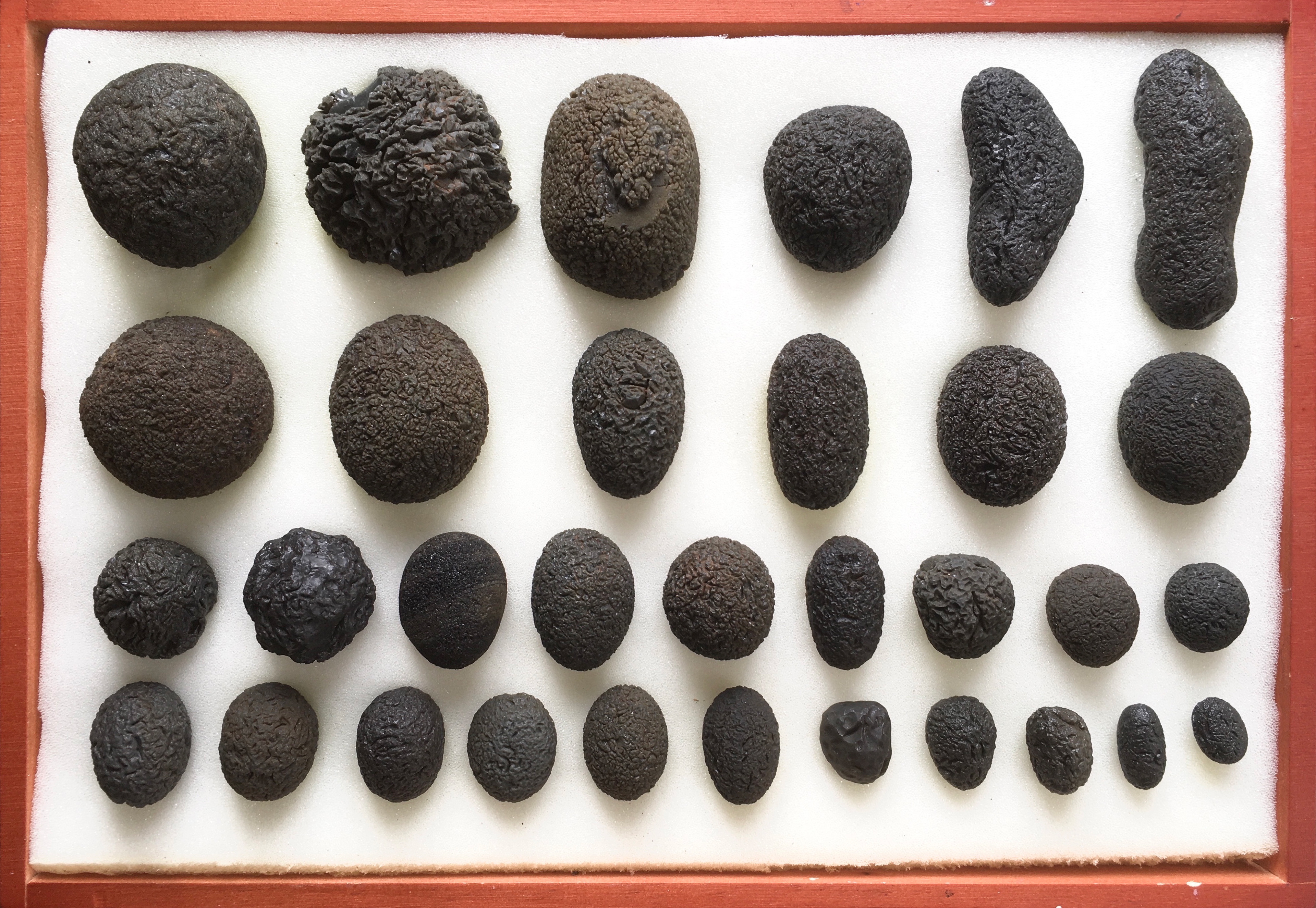 Collection of Dragonglass Obsidian (8-330g) from Milos, Greece. Various shapes, structures, colours and sizes. It is the only european obsidian that resembles tektites in both texture and shape variations. After three years of research, collecting, and field expeditions, we were able to compile, for the first time, a study focusing on the round and structured obsidian from Milos, which we have dubbed “Dragonglass obsidian” in the course of our work. In 2024, we began introducing Dragonglass obsidian to a global collector community that primarily deals with natural glasses, such as tektites and volcanic glass. This is intended to help ensure the preservation of this unique and rare obsidian from Europe. The aim of this study is to establish and expand the understanding of Dragonglass obsidian, thus laying the foundation for a better knowledge and comprehension of the formation of phreatic obsidians as a rare and unique natural phenomenon. Some pieces are available upon request.