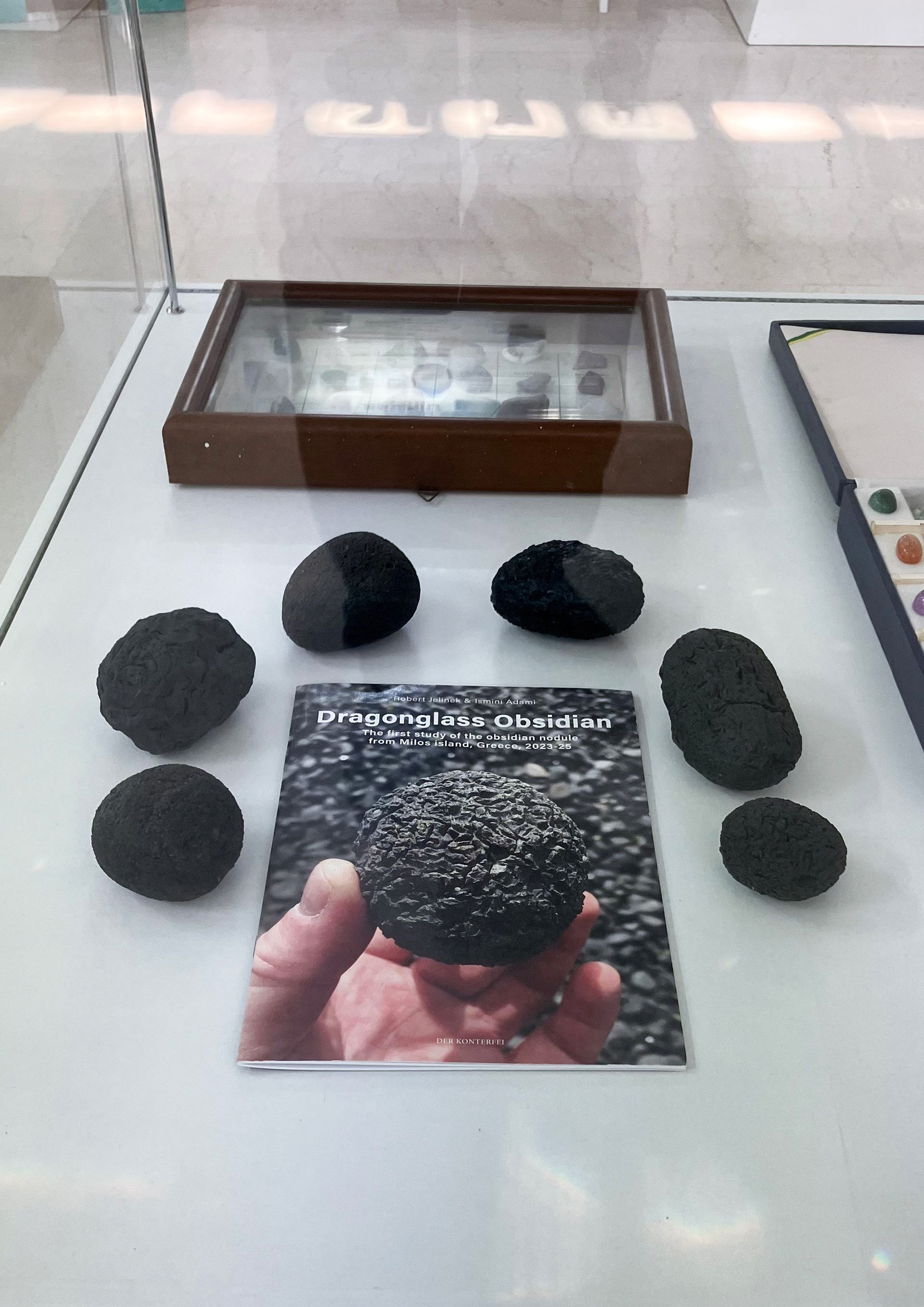 The museum is the first geological museum in the world to include Dragonglass Obsidian in its collection. We selected several specimens based on their shape, texture, and color (40-200 g). Many thanks to Panagiotis Voudouris.